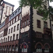 フランクフルト市庁舎を西に歩いていると、重厚なアカレンガが特徴的な建物が見えて来ます。今は銀行のようですがそのビルの南側の角にとんがり帽子のアクセントとなる小さな塔があります。それがリトルコーン(Kleiner Cohn )です。