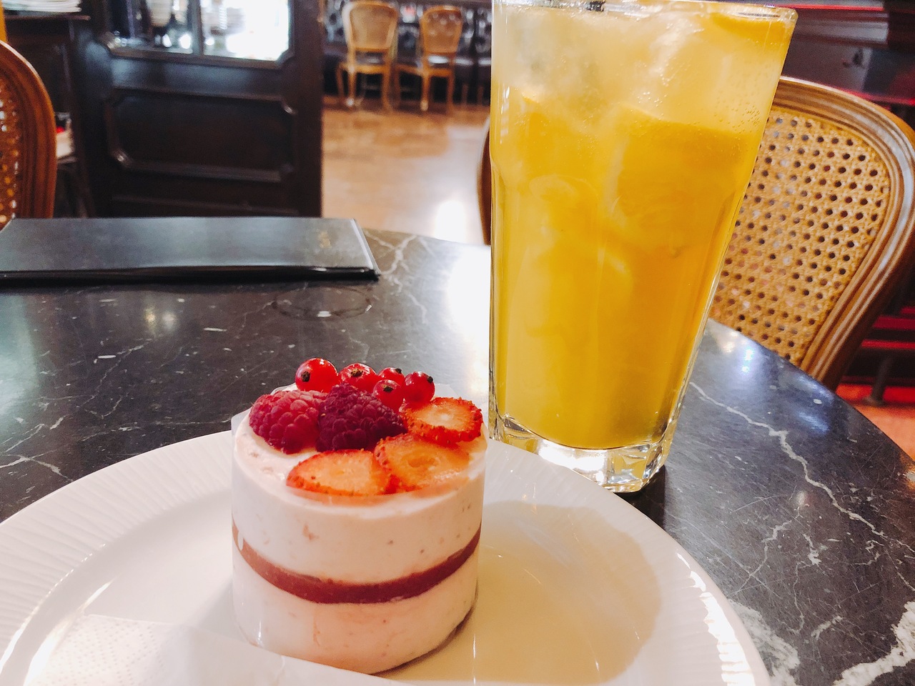 オペラハウスのすぐ近くでケーキのお値段は950~990ft(日本円で350~400円ほど)のケーキがほとんどでたくさんの種類がありました。自分はイチゴのケーキをいただきましたが、イチゴの味が濃厚でしっかりとしておりまた甘過ぎないのでとても良かったです。ビタミンC不足を感じているのでレモネードも頼みましたがこちらもホントに酸っぱくて健康に良さそうでした。
