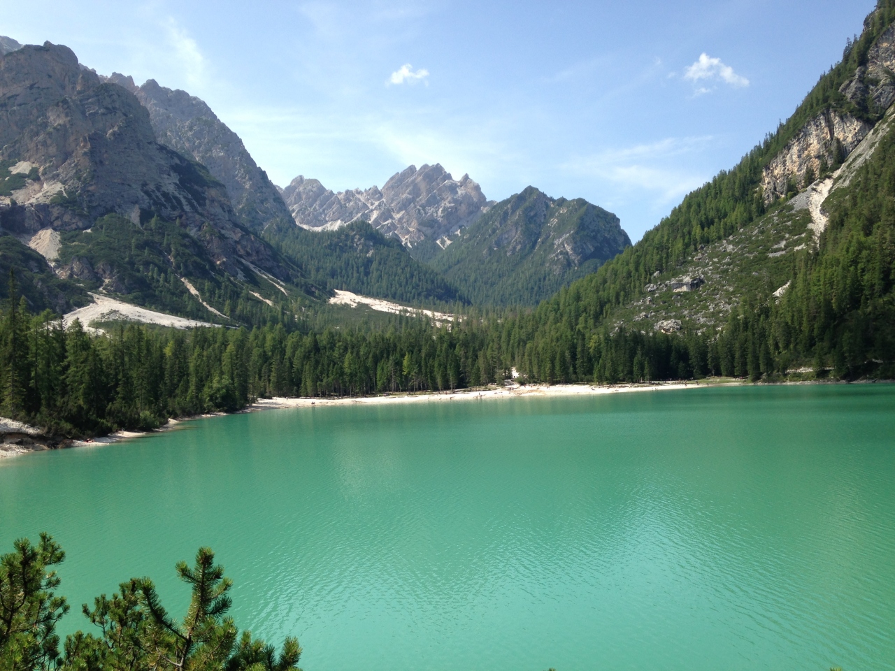 ドッピアーゴのバスターミナルから442番のバスで30~40分(€5)にある湖でエメラルドグリーンが鮮やかです。湖畔を1周歩くと2時間くらい。途中にベンチも多くピクニックに来ている方も多かったです。まわりを険しい山々で囲まれており神秘的な湖です。