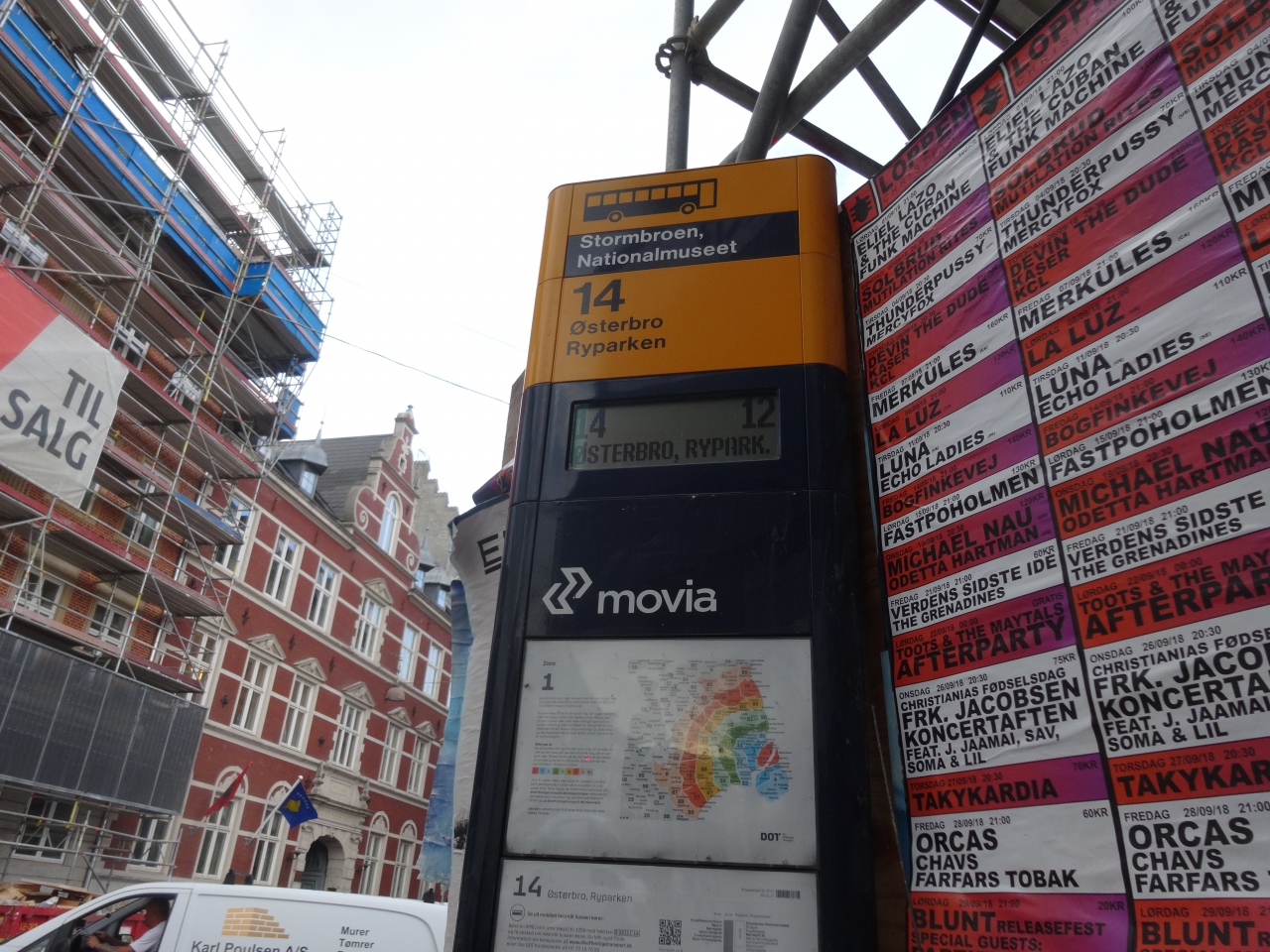 コペンハーゲン市内のバスは黄色です。コペンハーゲンカードやCITYpassを持っていれば乗り放題なので、行き先さえ間違わなければ簡単に乗れると思います。ただし、ところどころ道路工事をしていてバス停の場所が変わっていたり、ストロイエやコンゲンスニュートー付近は観光客と地元住民で大変な混雑になります。