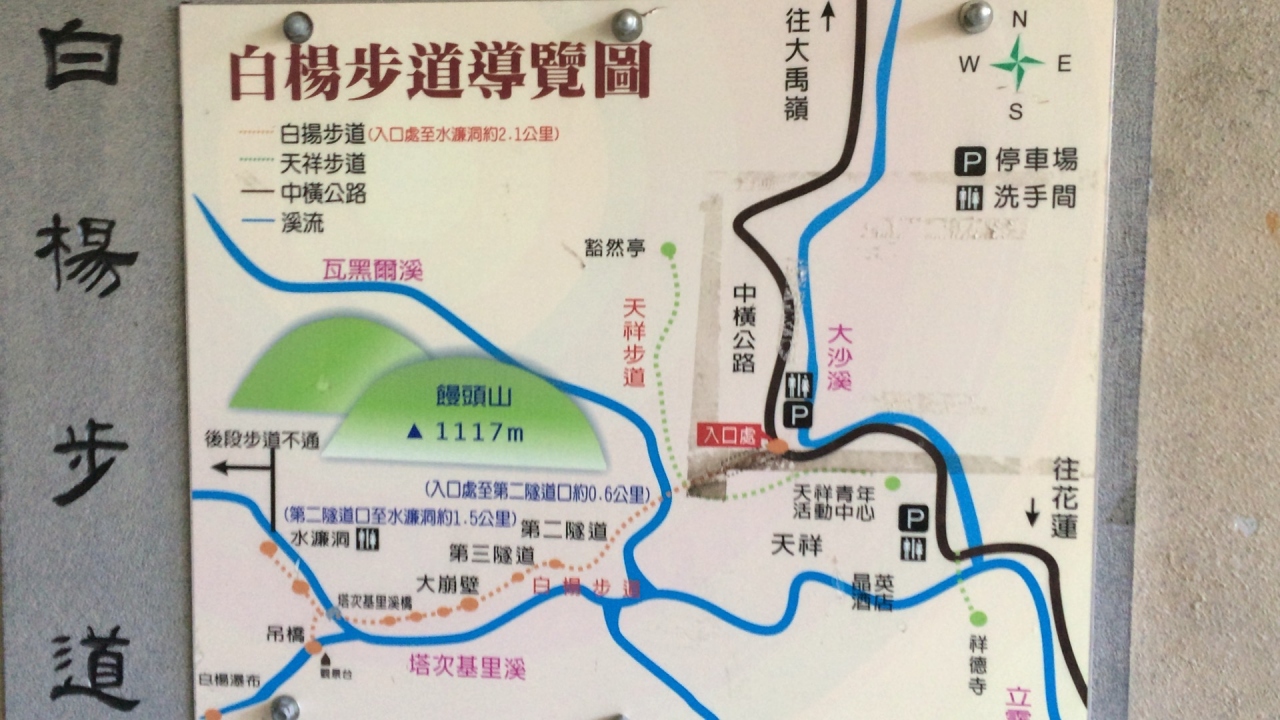 太魯閣国家公園のかなり奥に位置し、名所の一つ、水簾洞への入り口でもある白楊歩道。40~60分程で、最終地点へたどり着きます。歩くのに自信がない方にはあまり、お薦めしません。景色はなかなかのものです。自然の雄大さを感じる素晴らしい歩道。野生の猿にも出くわします。餌が比較的多いのか、どこかの観光地の猿のように餌目当てで飛び掛ってくる事は無かったですが、自分の持ち物には気をつけてください。