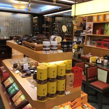 入口ではドリンクを販売していて、奥には茶葉や茶器などが並んでます。
