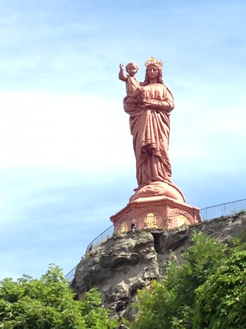 赤い聖母像が建っています。