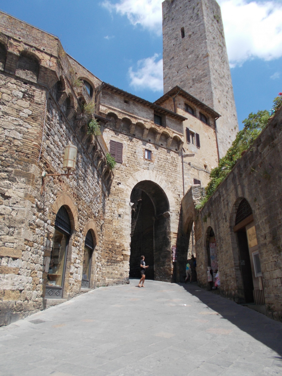 このベッチのアーチはサン・ジョヴァンニ通りからチステルナ広場に入るところにあるアーチがある場所です。アーチですが門のように感じます。この場所は町の中心への侵入を守るような強固な印象を受けます。城門とも言えます。