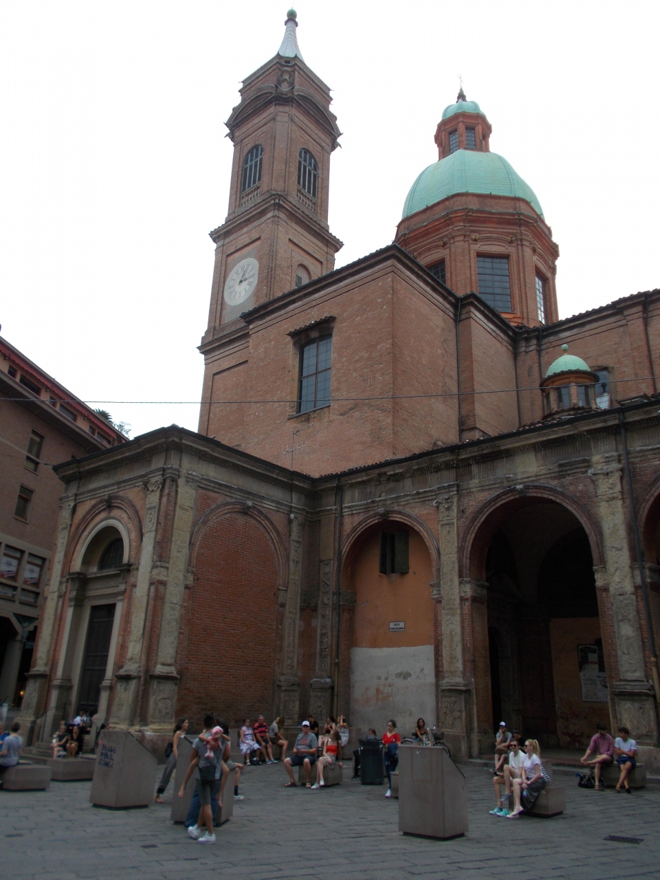 この聖バルトロメオ教会はボローニャの斜塔があるポルタ・ラヴェニャーナ広場に面しています。中央に斜塔から東側に面しています。時計塔やドームがあるとともに正面のサファートは前室が付けられていて特徴ある教会です。外観では古い印象です。