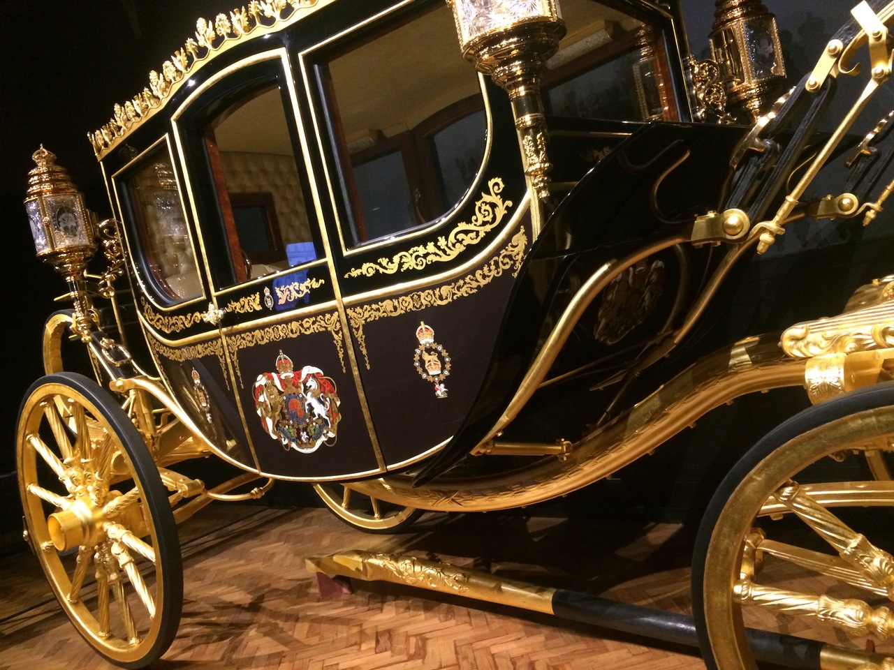 バッキンガム宮殿の入場口からほど近いところにある、王室の馬車などの展示スペースです。馬がいたり、女王のロールスロイスがあったり、とにかく豪華です。すごく混んでいるわけではなかったのですが、外に近い環境で観覧する場所があり、館内対応というより外対応の格好をして行くべきでした。