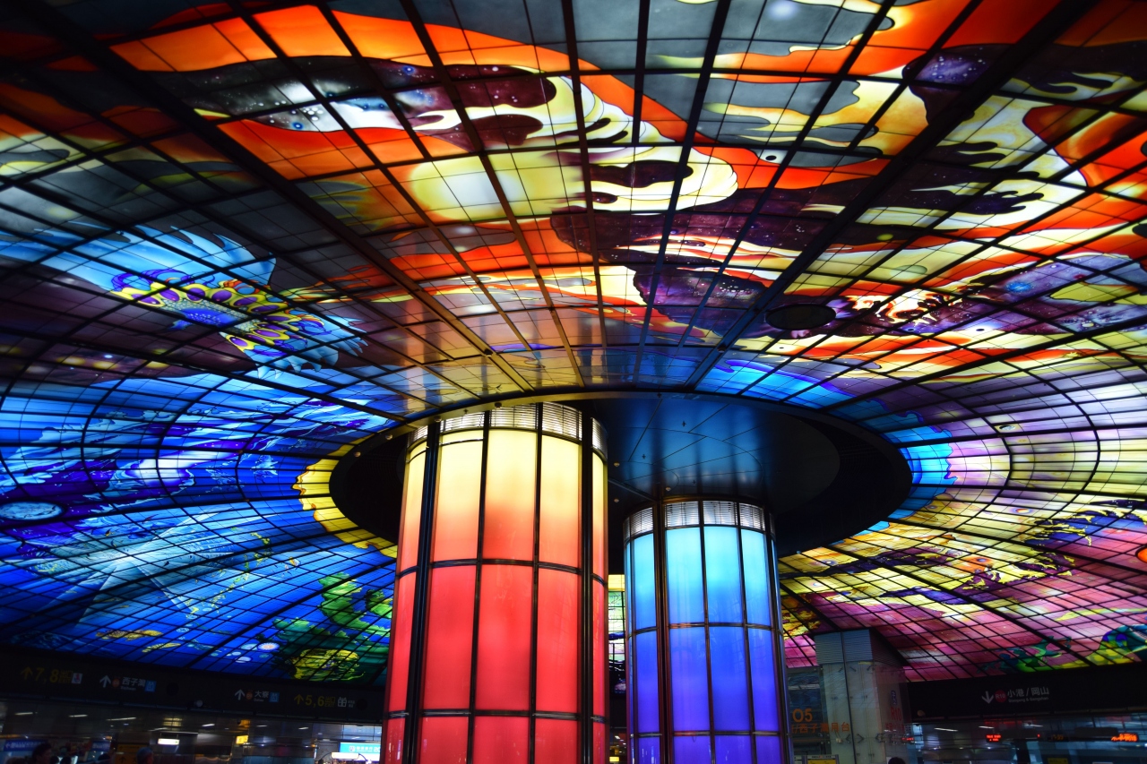駅構内の中心にある、見事なステンドグラスが有名ですが