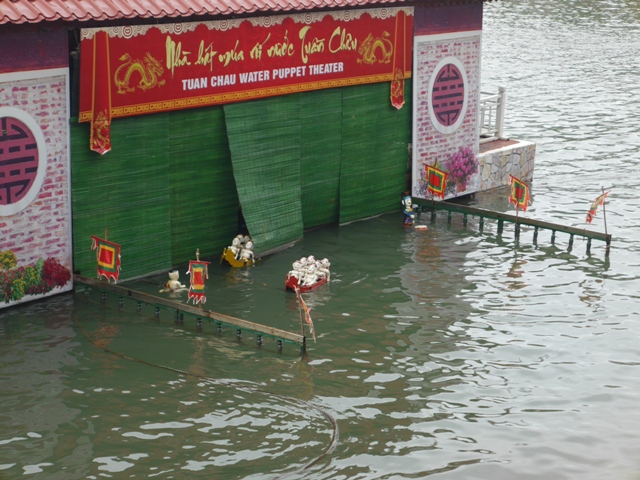 ハロン湾クルーズに向かう港で、結構たくさんのお店が並んでいました。お土産を買うのにいいと思います。前日にハノイ市街で水上人形劇をみましたが、ここでもやっていました。なんと、桟橋に向かう通り道で、海の中に小屋を作り演じていました。人も少なく見やすいので、ここで十分でした。