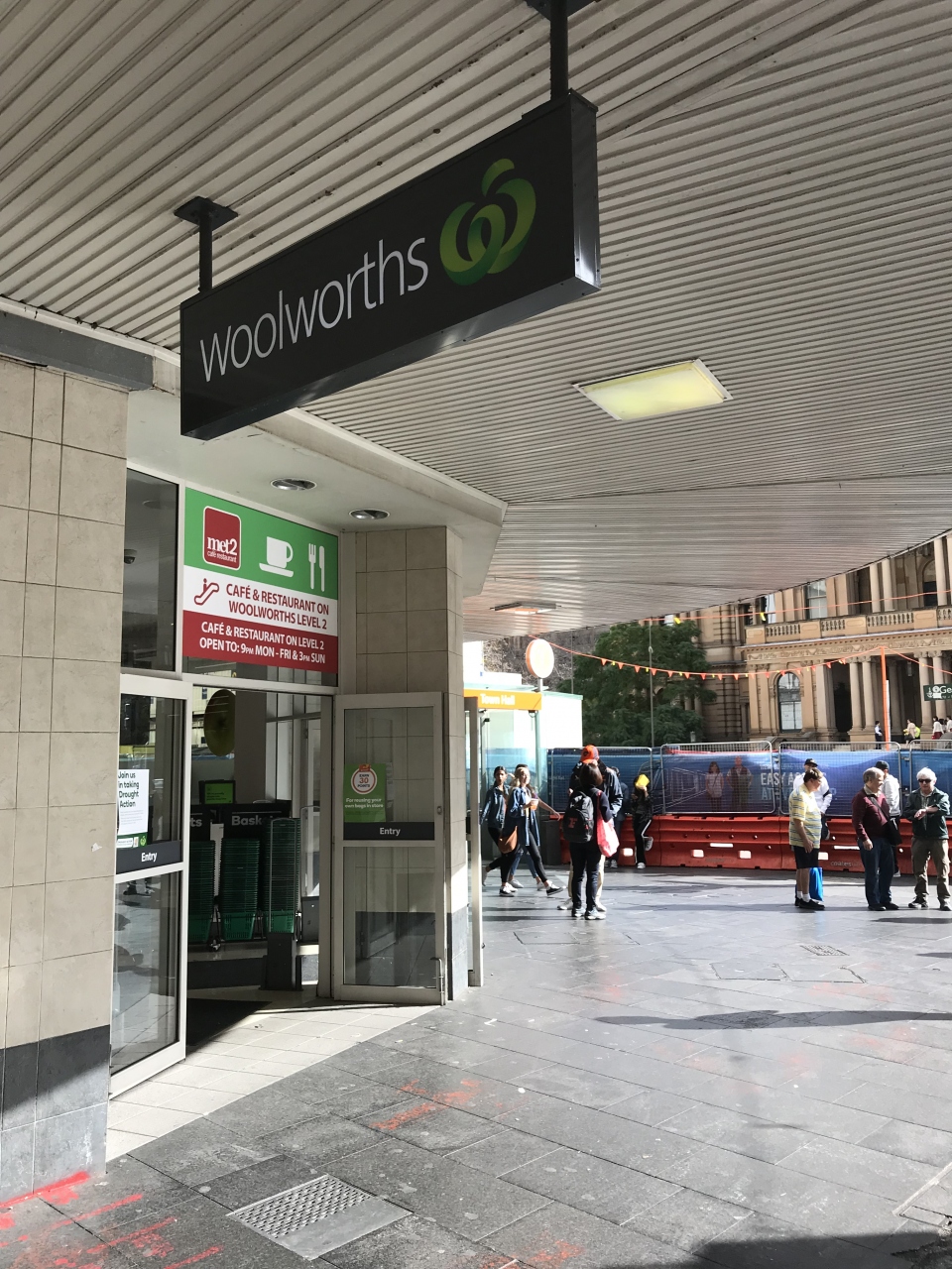 ウールワースは、オーストラリアを代表するスーパーのチェーン店です。タウンホール店は、タウンホールの向かいにあり、観光のついでに立ち寄りやすい場所でした。また地下階では、タウンホール駅と直結していて、非常にアクセスが良かったです。