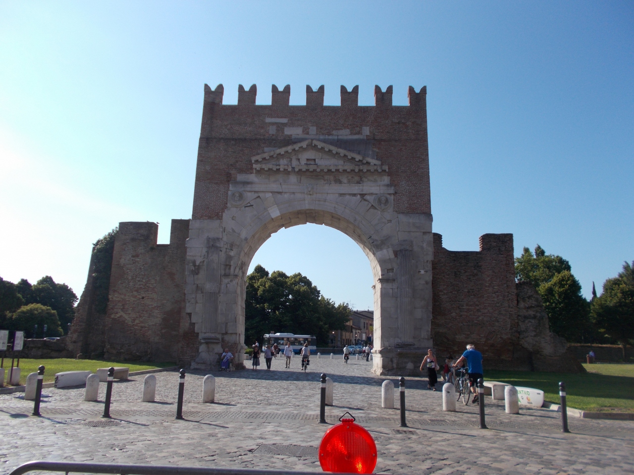 このアウグスツスの凱旋門は町の南にあります。町の中心のトレ・マルティーニ広場から南東のつなぐ通りの端にあります。現在は門は単独ですが門の近くには古代の遺跡が残っています。門は大きく素晴らしい景観を今も見せています。