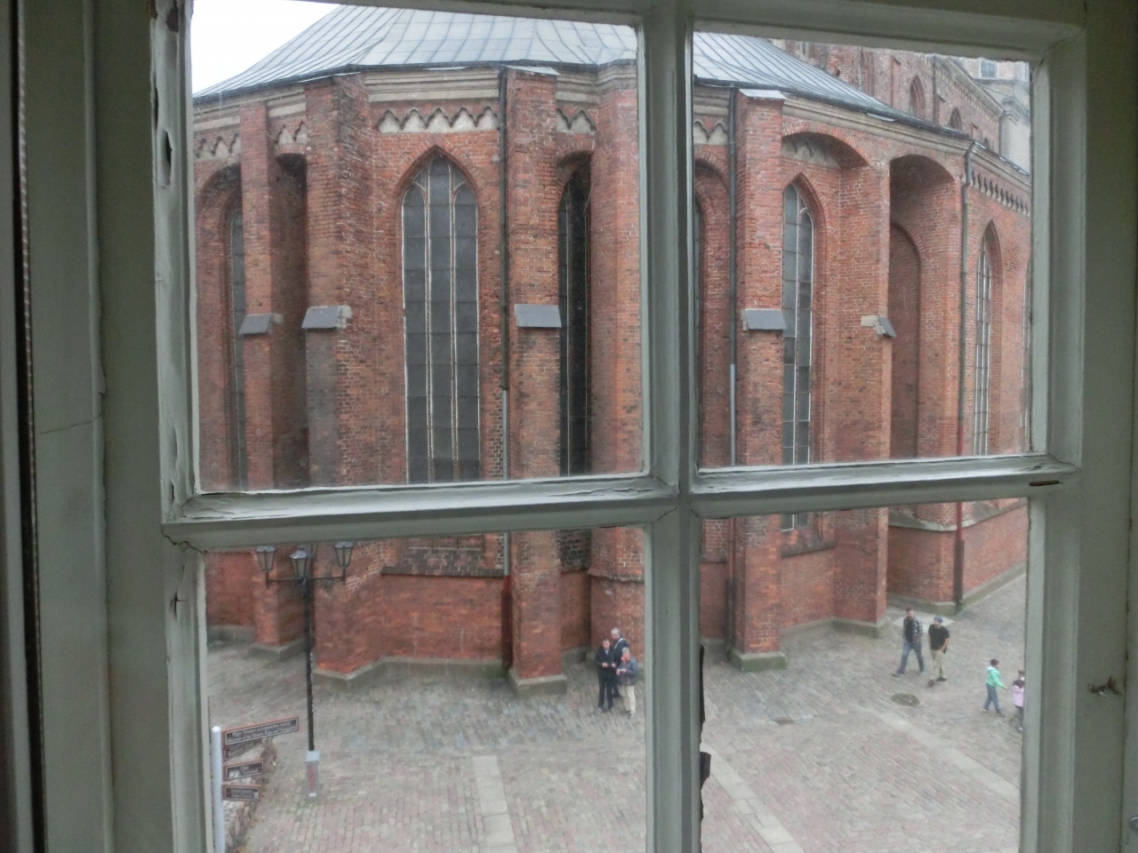 - 窓から見ると観光客がいっぱい