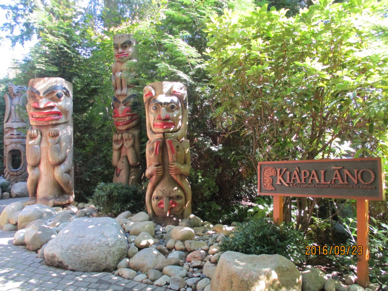 長い吊り橋を渡るのですがけっこう揺れるので怖いです!吊り橋だけかと思ったら、ハイキングコースみたいになっていてけっこう長時間楽しめました。入り口ではトーテムポールがお迎えをしてくれます。ダウンタウンから夏限定だったかな?バスで行きました。