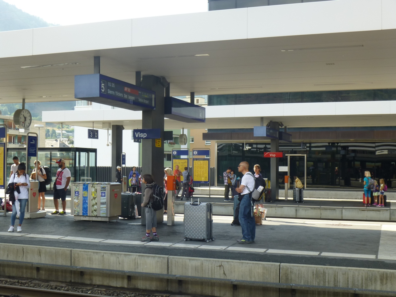 ベルンからでも、シャモニー方向からでも、サンモリッツ、ベルナーオーバーランドからでも、ここを通って、ここで乗換て、お待ち兼ねのチェルマットへ行ける。ここを出ると川沿いを左右しながら、スイスらしい景色も見ながらです。駅の案内表示はここに限らないが実に適切で正確だった。