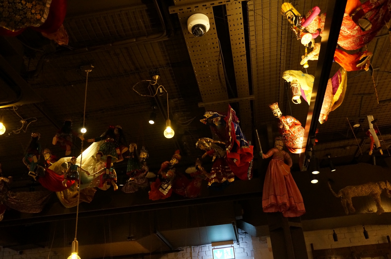 天井には人形が飾られていて、雰囲気のあるお店でした。