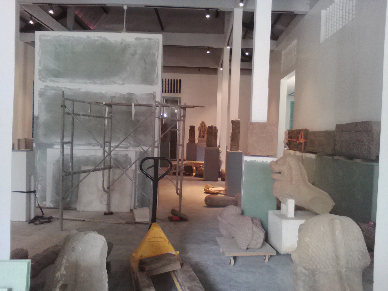 バッタンバン周辺から出土した彫像や彫刻が展示されているとのことですが、入口の扉が半開きだったのでもしや…と思いましたがやはり閉館中。中を覗くと大規模改修中でした。作業している人にいつオープンするのか尋ねたら「ネクスト イヤー」とかなりアバウトな答え。どれだけあてになるかわかりませんがしばらくは閉館中のようです。