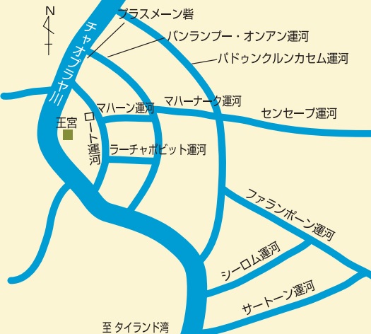 バンランプ運河とロート運河の二重の運河とチャオプラヤ川に挟まれた川の中になる島には、バンコクの環濠城壁都市が発達しました
