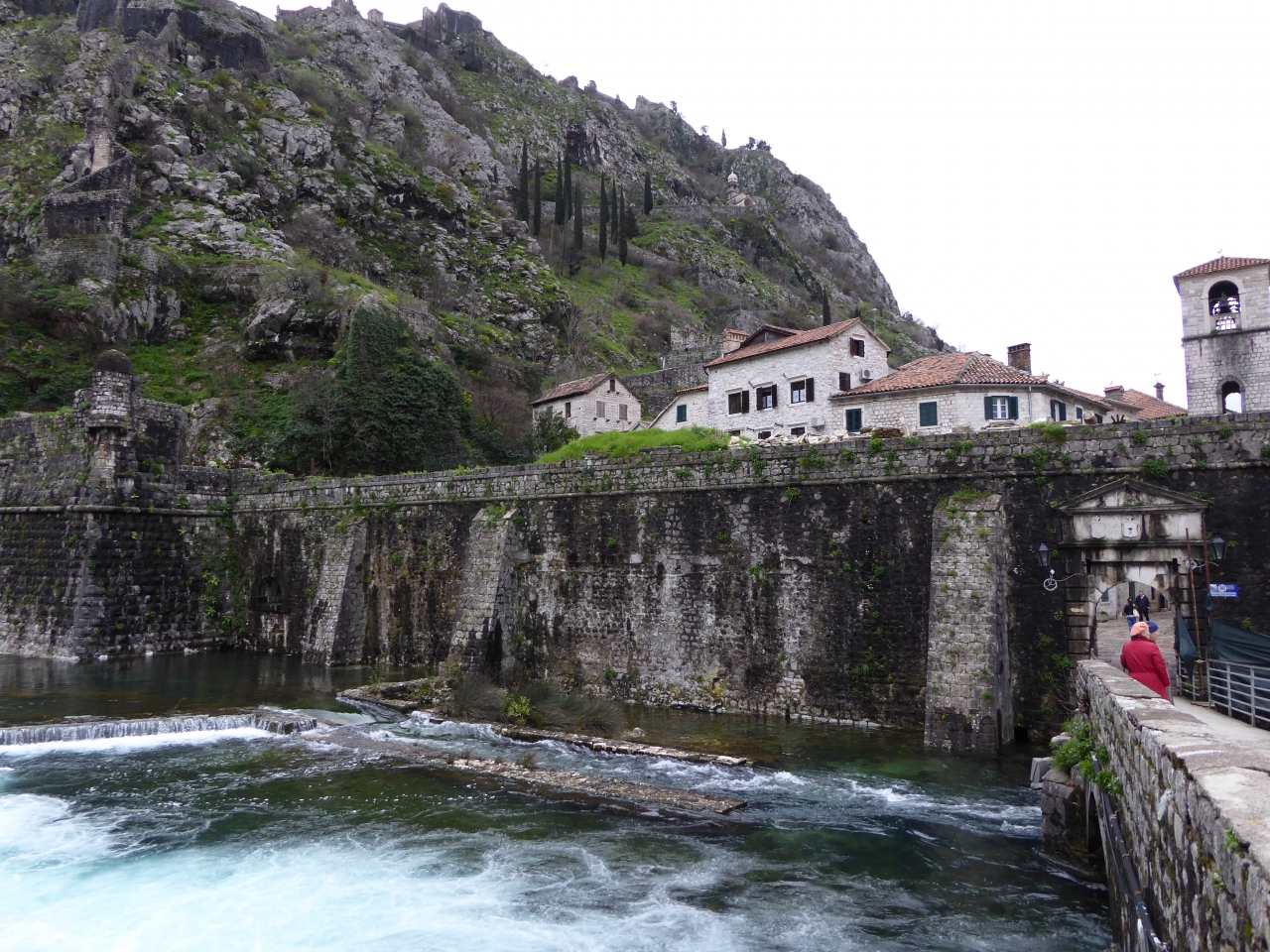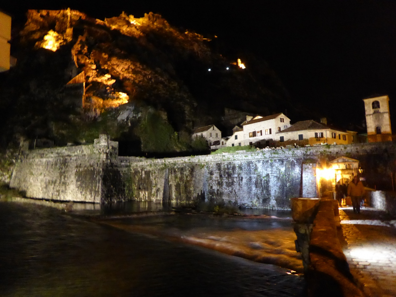 コトルの旧市街から今の市街地へ抜けるときに、こちらの北門を利用しました。北門そのものは大きくも無く至って普通ですが、そこに架かる橋からの綺麗なシュクルダ川、城壁がへばりつくような絶壁の山の景色は壮観です。また、こちらの門も夜はライトアップされるので、ぜひ一度見てもらえればと思います。