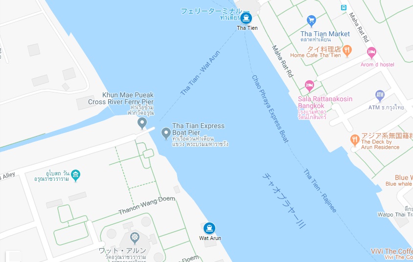 ワットアルンの渡し船の東側の船着場は、ターティアンで、エクスプレスボートと船着き場が共用になってますので、間違いやすいのです。