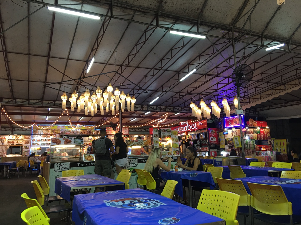 ガイドブックには必ず載ってるナイトバザール 。スリも多いので気をつけてとネットで情報を入手してたので緊張しながら現地に行くと、週末の夜なのに閑散としてました。(笑)ナイトバザールのフードコートエリアは遅くまで営業していたので、食事のタイミングを逃したら、ぜひ利用してみてください。食事は安くて美味しいです。いろんなホテルの無料送迎バスの発着所もここにあるので、チェンマイ滞在中は毎日ここに来てました。