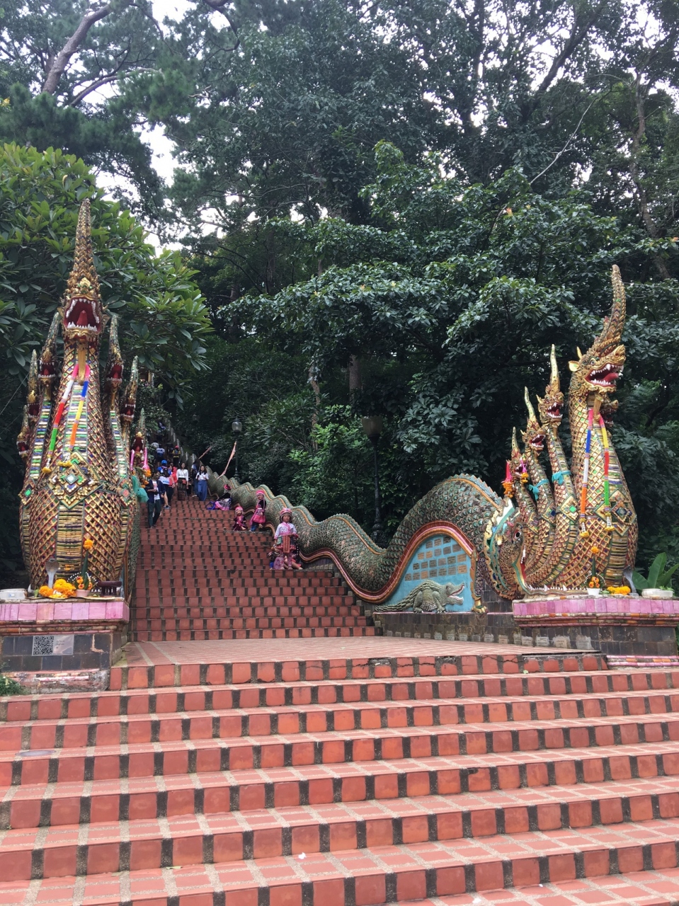 建物というよりその手前の階段で写真を撮るために行ってきました。ソンテウ で行けるのですが、できるだけタイムロスを無くすため、往路はGrabで行き、帰りはソンテウ を利用。朝早い時間に行ったこともあり、ゆっくり見学することができました。山の上に位置してるので朝は肌寒かったです。