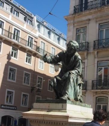 リスボンのメトロMetro Baixa-Chiado駅の長いエスカレータのある入り口の近くにリスボン生まれの現代詩人フェルナンド ペソア(Fernando Pessoa)の銅像があります。 ほとんどの観光客はその素性も知らずに銅像と写真を撮って楽しんでいます。