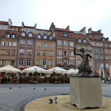 旧市街広場までトラムで行って見ました。広場を囲むようにきれいな建物が並んでいます。この建物は、第二次世界大戦で破壊されたが、忠実に再現されています。広場の中央に人魚像がありますが、人魚も剣を振り上げ、盾を持ち勇ましい姿です。ただ曇っていたので、旧市街のきれいな写真が撮れなかったのが残念です。