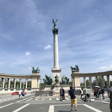ハンガリーの建国を物語る広い歴史広場。
