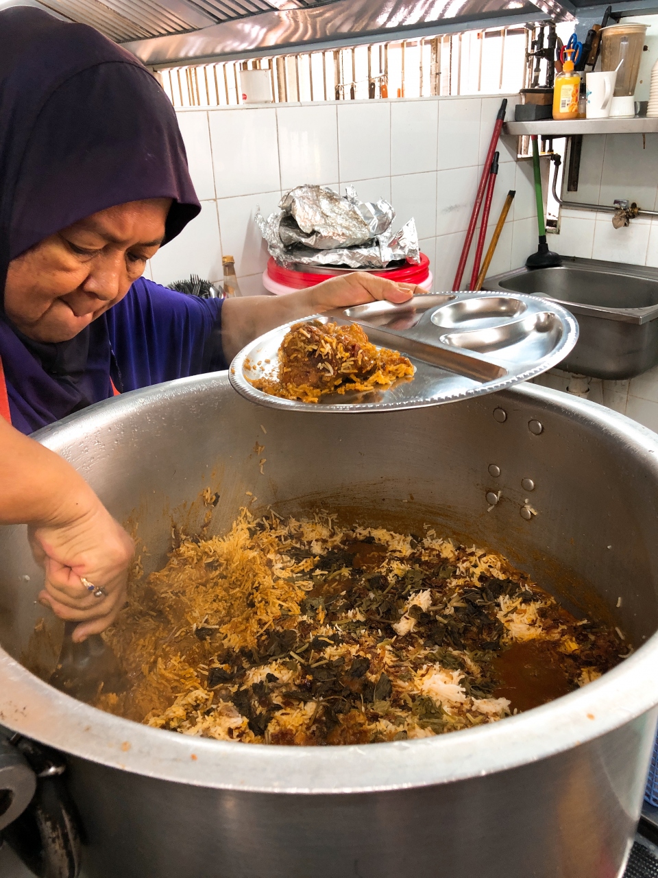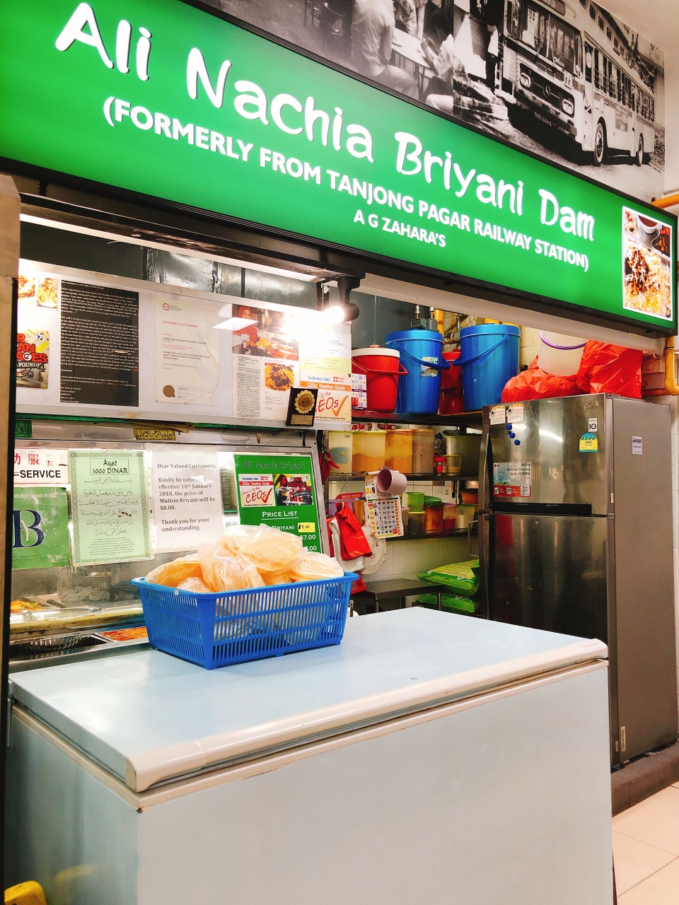 かつてマレー鉄道のタンジョンパガー駅の駅舎にあったビリヤーニ屋さん「Ali Nachia Briyani Dam」。現在は移転してタンジョンパガープラザ2階の若干分かりづらい場所にあります。美味しかったのですが、マトンの臭いが珍しく少しだけ気になりました。おばちゃんも一見ムッとしているように見えますが、話すと気さくです。