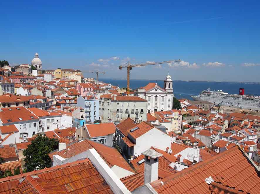 リスボンでも人気の路線、12番のトラムも走るアルファマ地区屈指のビューポイント。まずはここでトラムを降りて展望を楽しみましょう。おすすめは朝一番の人の少ない時間と夕暮れ時に街がオレンジに染まる時間帯です。