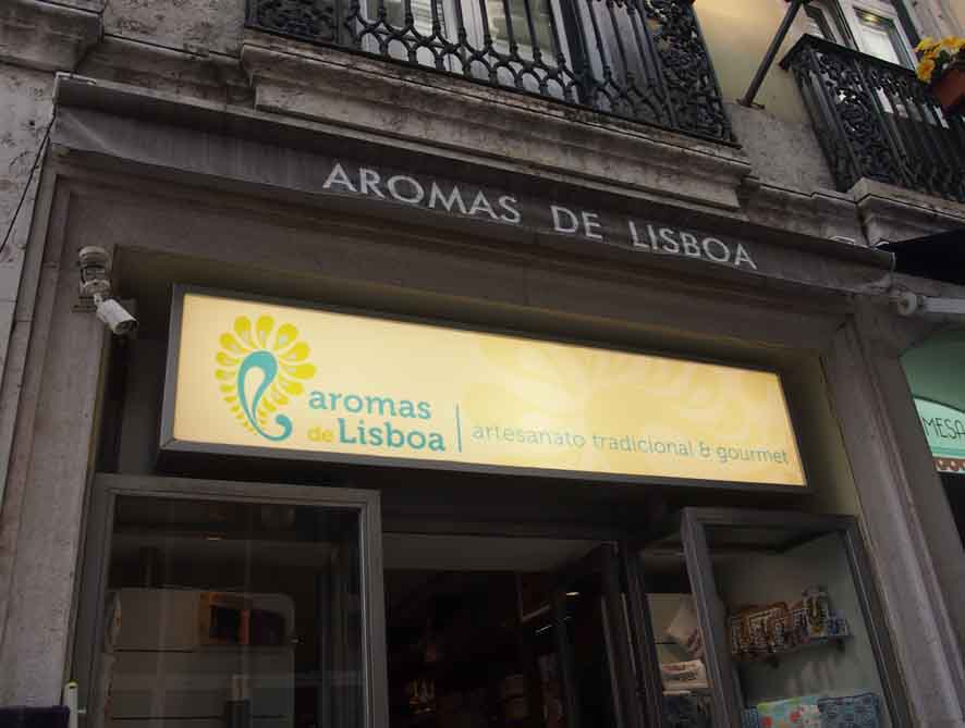 マリア2世国立劇場横のポルタス・デ・サンアンタン(R. das Portas de Santo Antão )通りを北へ登って行くとお土産ショップも少なくなった辺りにアロマス デ リスボン(Aromas de Lisboa)はあります。オーガニック石鹸などアロマが豊富なスーベニアショップで他にはパッケージがカラフルなサーディンの缶詰が並んでいました。
