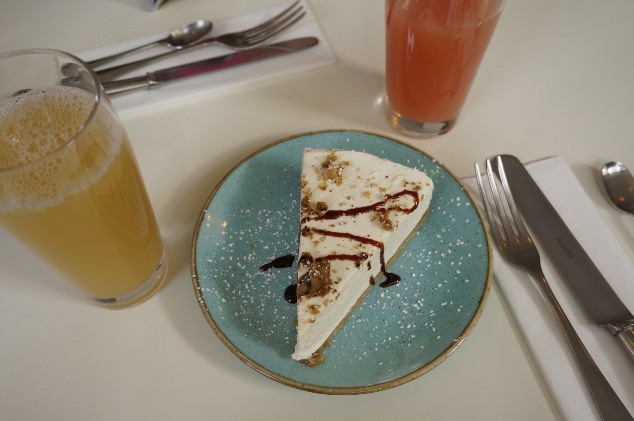 その日は気温が高めだったので、ジュースとチーズケーキを注文。
