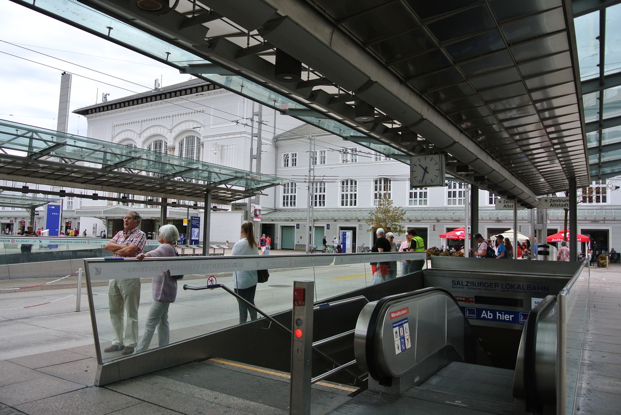 ザルツブルグカードを持っていれば市内交通をフリーで利用できます。ザルツブルグカードは駅のインフォメーションで購入できます。中央駅を出ると目の前にすぐバスターミナルがあります。市内を走るバスや近郊の町へ行くバスもこちらから出ます。旧市街方面へは歩いて15分ほどですが、バスを使った方が便利です。