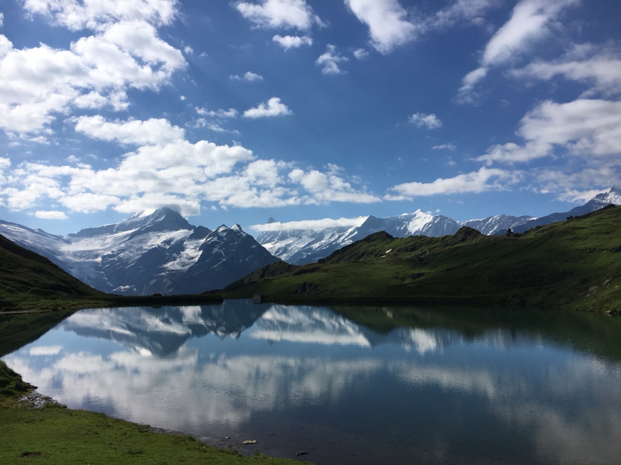 フィルスト頂上から1時間程で歩けるハイキングコースですが、行きは緩い坂を上がっていくのが大変でした。朝一番で行ったので人が少なく、愛犬と歩く人もいたりして楽しめましたよ。手を入れると大変冷たい水なのに、犬は元気に泳いでいました。