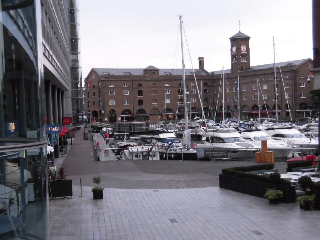 テムズ川につながる船着場ですが、再開発されていて、とてもきれいなヨットハーバーになっていました。