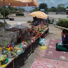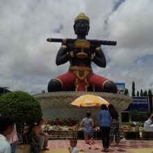 バッタンバンの名前の由来となった武将の像です。高さ8mでなんともユーモラスな姿をしています。この武将の持っているのが米をおいしくするという不思議な棒。その昔、王位継承争いのときにこの棒を敵対する相手に投げつけて失くしてしまい、それ以来この地がバッドンボーン(バッ=失くす、ドンボーン=棒)と呼ばれるようになったようです。信仰の対象にもなっているようで参拝者が多くいました。