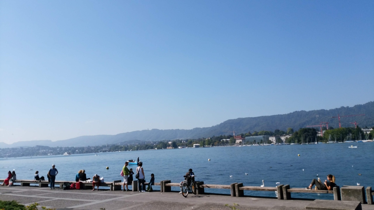 朝コーヒーを購入し、チューリッヒ湖までお散歩。そしてチューリッヒ湖でコーヒーを飲みながらのんびり休憩。周りも一人だけでランチを食べながらリラックスしている人や、語り合うカップル、おしゃべりする学生など各自各々リラックスタイムを過ごしているようでとてもステキな場所でした。歩いても行けるのでぜひ。