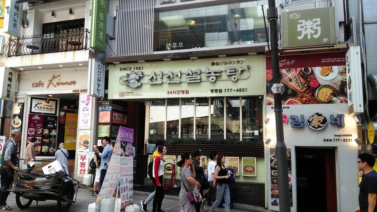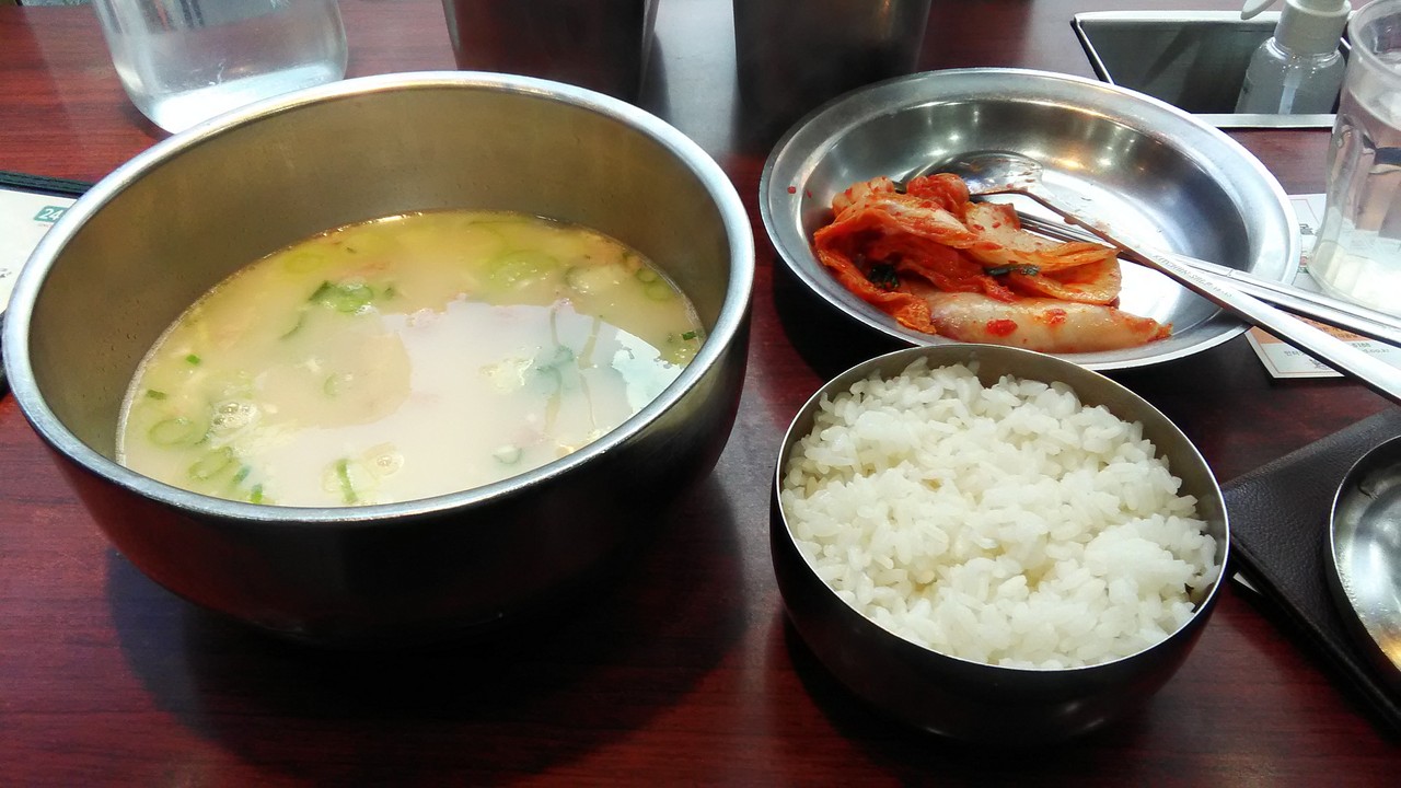 ソルロンタンはトンコツのようなくどいスープを想像していたのですが、あっさりとしたやさしい味、臭みもほとんどありません。テーブルの調味料で自分好みに味を調整するのが韓国風。