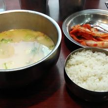 本来はご飯とスープを混ぜるらしいのですが、食べ放題のキムチも酸味がきつすぎず美味しかったので、そのままいただきました。