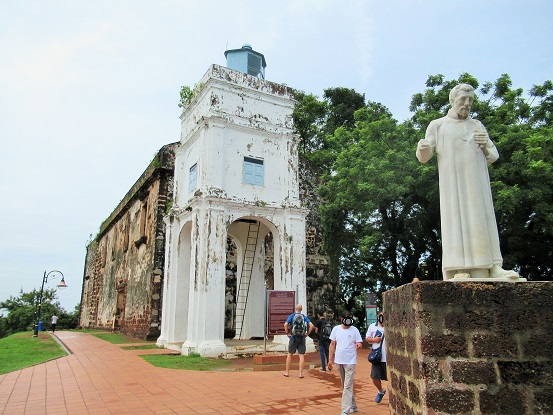 今回はマレー半島を縦断する旅でその途中のマラッカに立ち寄っています。マラッカ観光の中心地となっているオランダ広場の東側に「セントポールの丘」がありその頂上に「セント ポール教会」が建っていますがその前にこの「フランシスコザビエル像」が立っています。マラッカ海峡の方向を向いているこの像は悲しそうな姿をしています、また右手がないのも理由があるようです。行き方はオランダ広場の横にある「スタダイス」の横の階段を登って行きますが曲がった急な階段もありますので注意してくださいね。ちなみに教会は1521年に建てられたものですが倒壊し現在はその廃墟の跡となっているのは残念です。是非立ち寄ってくださいね。遠くにはマラッカ海峡を見ることができます。