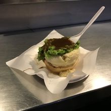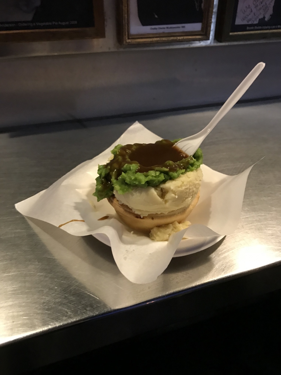 一番人気のタイガーをいただきました。ミートパイの上にマッシュドポテト、さらにその上にすり潰したグリーンピースがのっていて、ボリュームたっぷりでした。