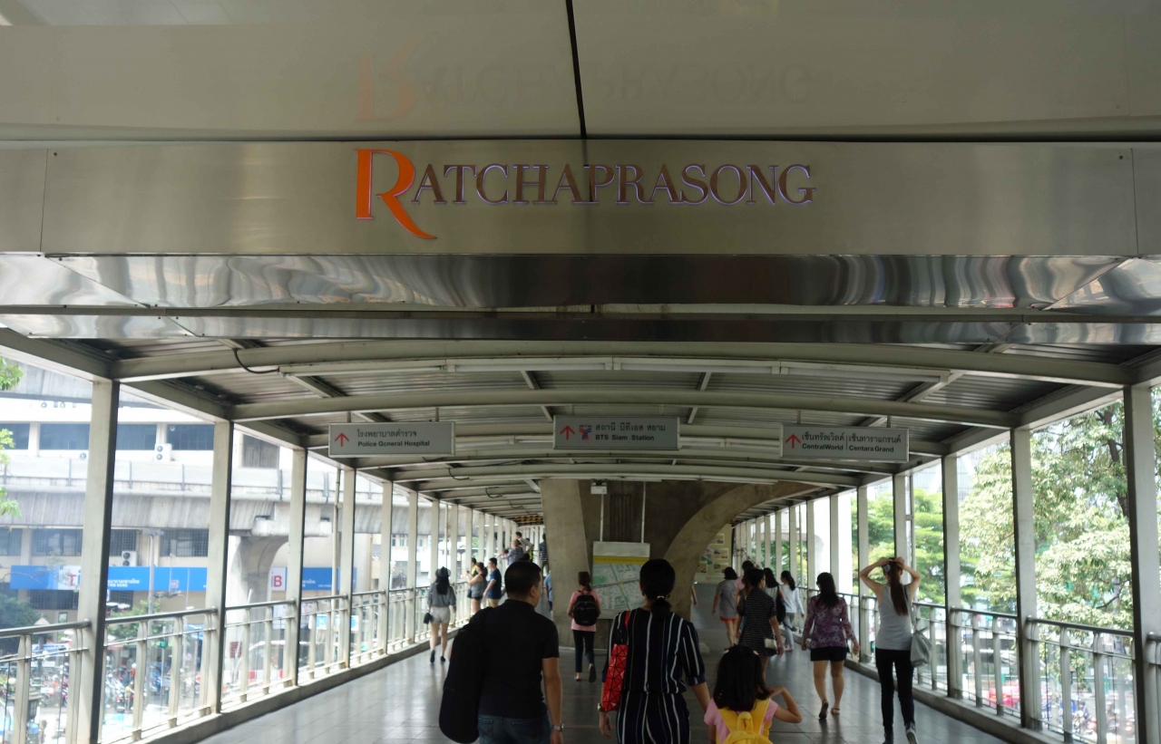 サイアムからチットロム間はBTSに乗るよりこのスカイウォークを使った方が便利ですね。セントラルデパートや別館のZENはこのスカイウォークからがスムーズです。この通りからエラワンの祠を見ると民族舞踊や祠の全景が手にとるようにわかります。