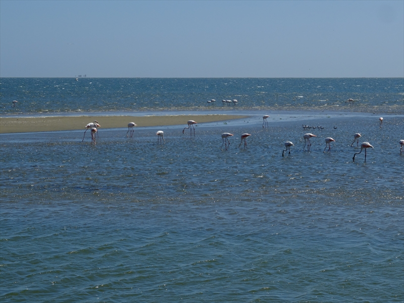 フラミンゴは、一か所に大きな群れを作っているわけではなく、広範囲に小さな群れが散っているという感じ。