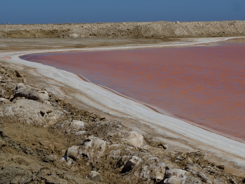 フラミンゴ生息地からさらに進んで行った場所にある塩田では、高濃度の塩分を好むバクテリアが発生して水がピンク色に見える不思議な光景が見られてお勧めです。
