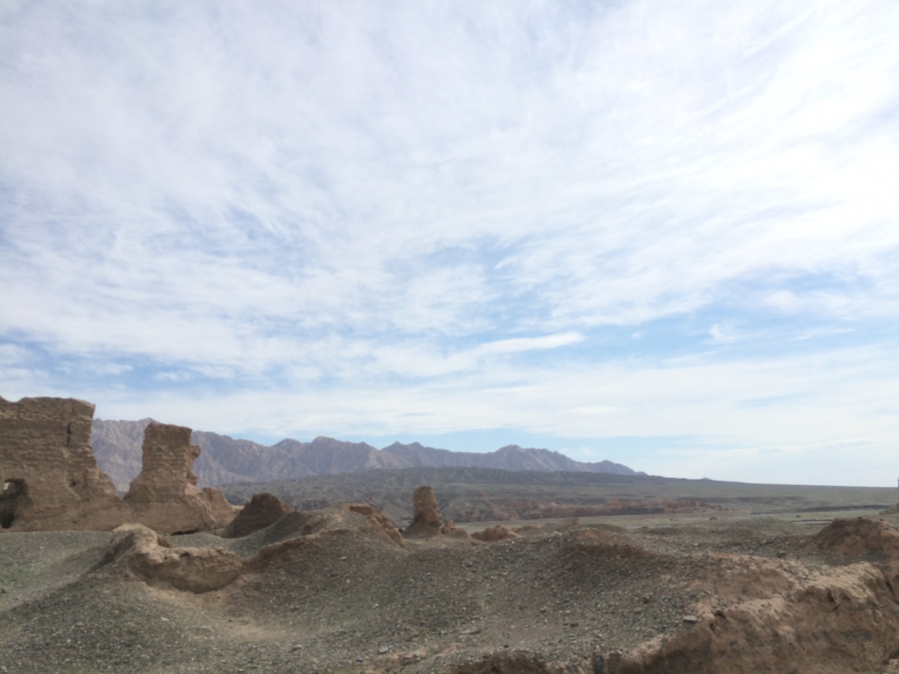 天山山塊をバックに柄の大きな遺跡が点在し、迫力があります。三蔵法師も滞在したといわれる古跡。訪問の価値あり。