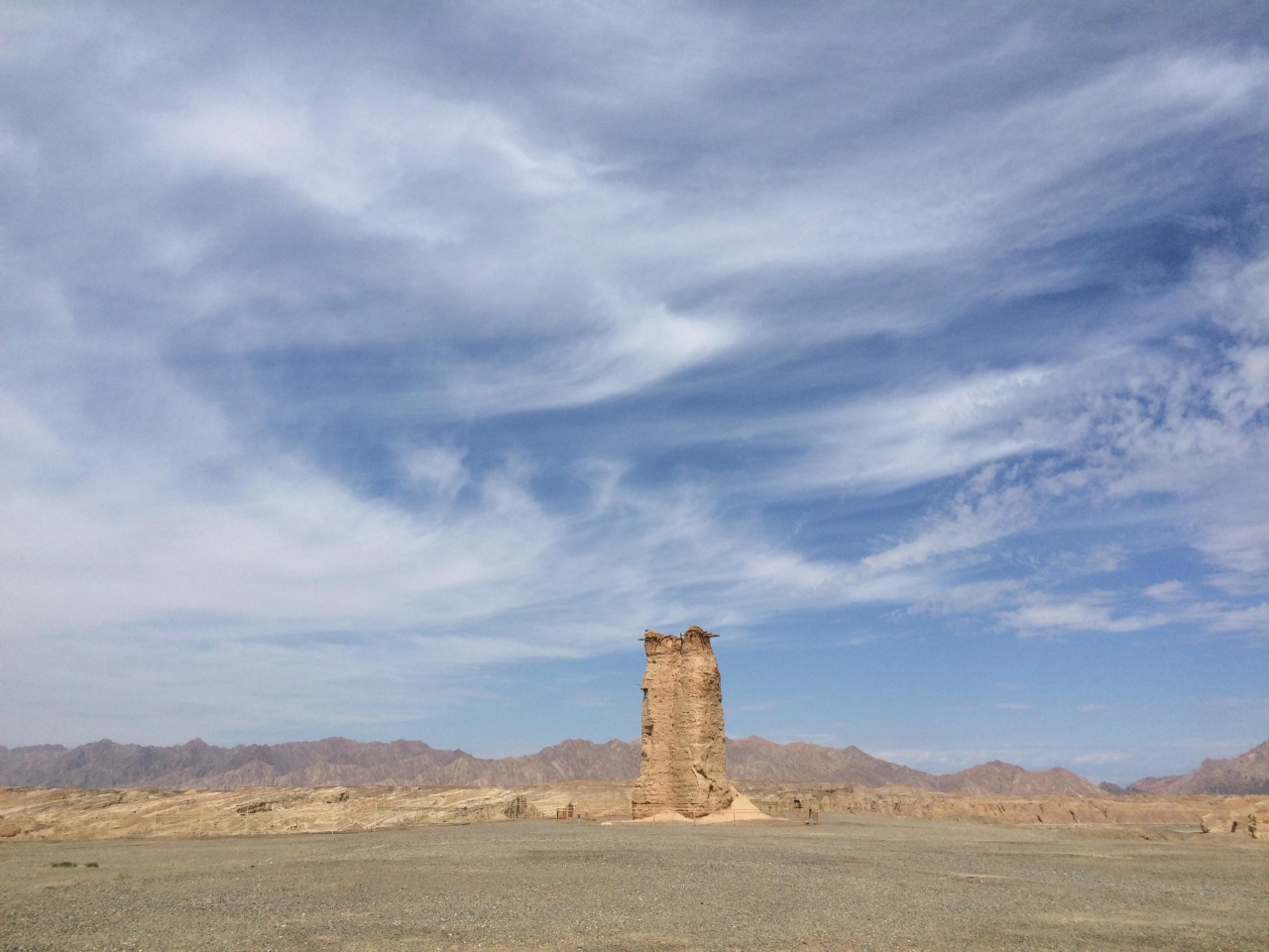 周囲は何もありませんが、クチャの方角を望むと大きな発電所が建っていました。