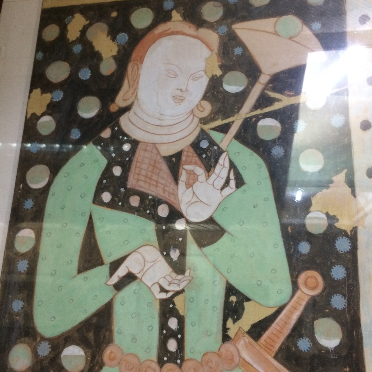 博物館が併設されていて、意外にみどころあります。仏頭の彫刻、仏画、イスラム侵入前のクチャの様子が想像できる展示。白人の仏画もあり、なかなかのカオスっぷりです。