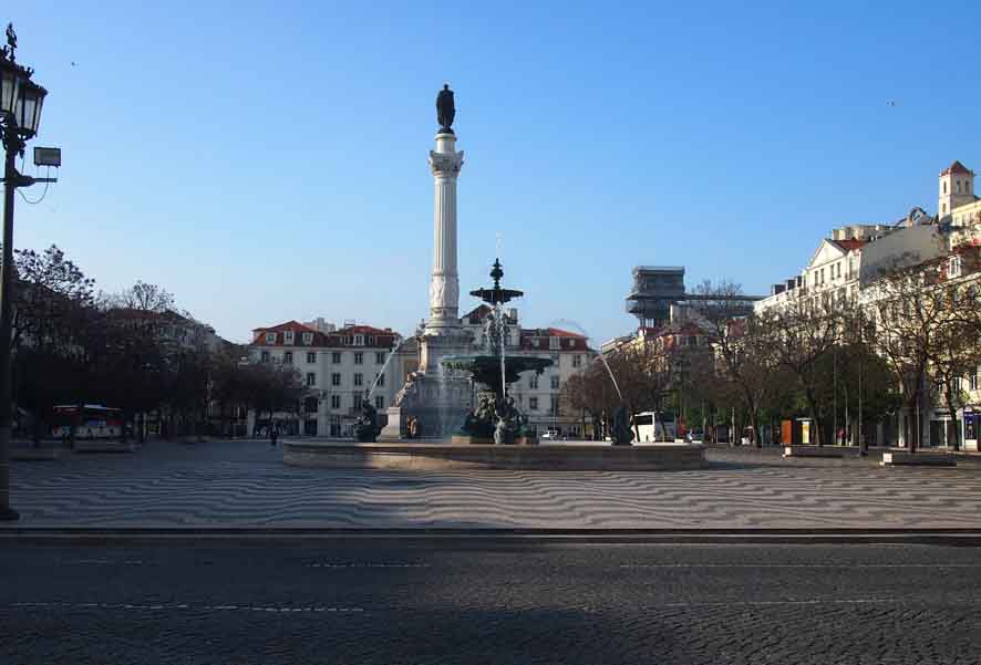 リスボン歴史地区の象徴的広場でロシオ広場と言う愛称で親しまれていますがドム・ペドロ4世広場(Praca Dom Pedro 4)ですね。白と黒のタイルで表現された模様も綺麗ですね。地下鉄ロシオ駅からポルトガル国鉄ロシオ駅に向かう際にも通りました。