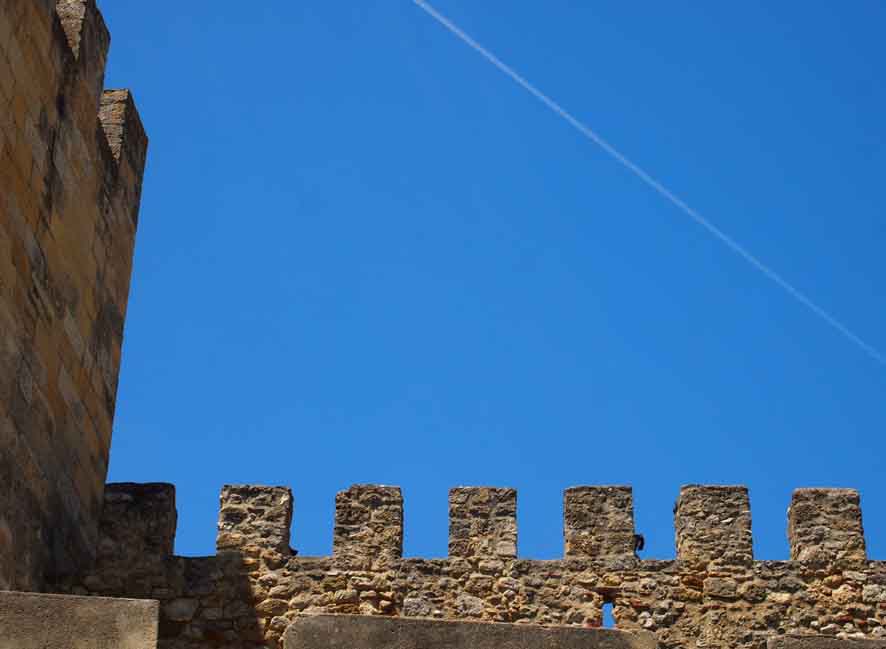 バイシャ地区から登りルートで行こうかとも思いましたがせっかくなのでリスボンで人気の28番のトラムに乗ってグラサ(Graca)経由で下りながらサン ジョルジェ城(Castelo de Sao Jorge)に向かい、更にアルファマ地区をめぐるルートを選びました。お城は幾重もの道路に囲まれていますが上り坂の場合、結構気いついと思います。城壁は中世のお城を思わせるほとんど垂直な角度です。