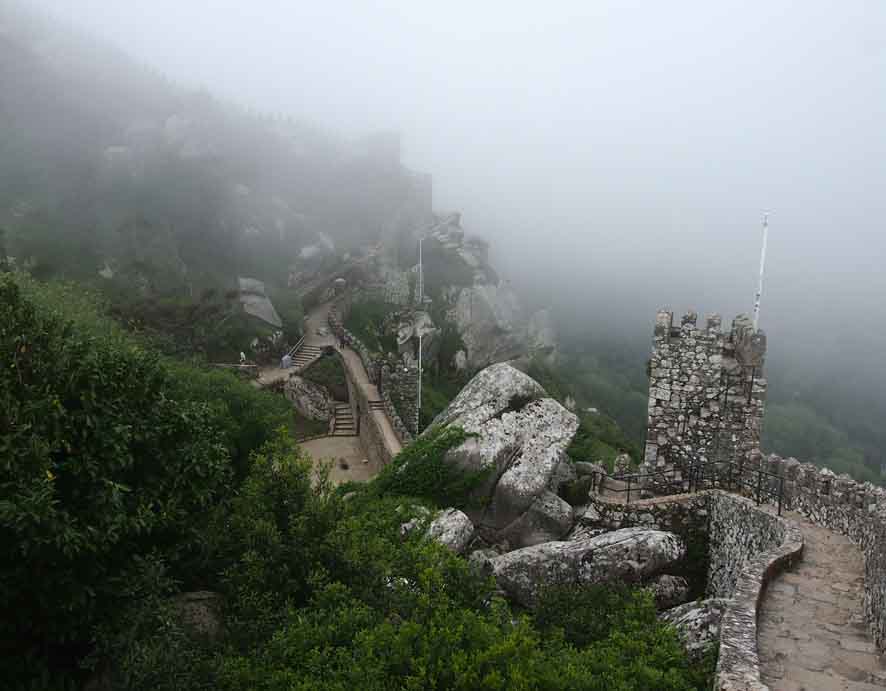道路わきにあるチケット売り場が遺跡のスタート地点です。リスボンカードで割引だったと思います。遺跡はイスラム系民族であるムーア人が11世紀に築いた石積の城壁です。今は破壊されて一部が残っている状態でした。城壁に沿うようにトレッキングをする感じです。見晴らしの良い場所にある城壁跡の上から眺める景色は絶景です。