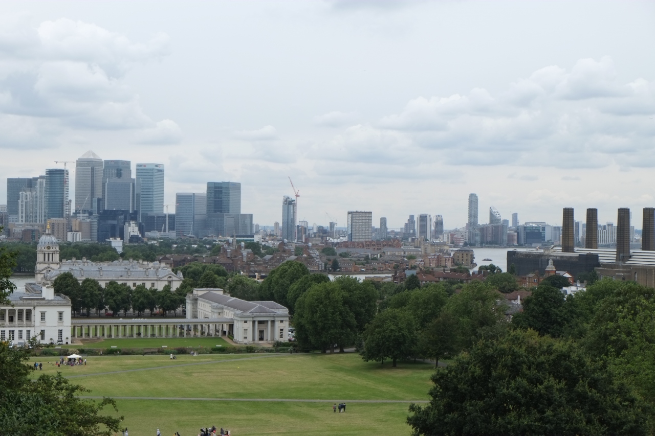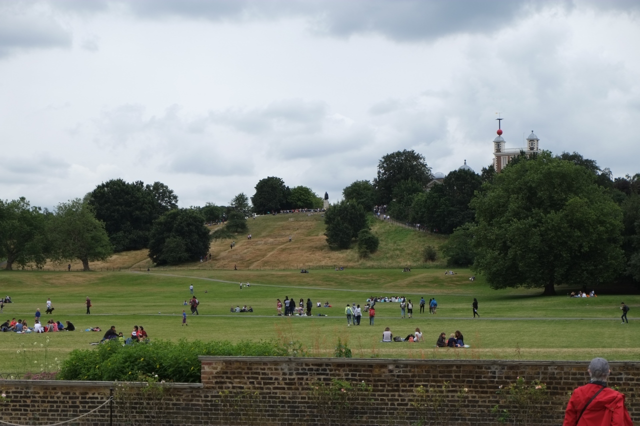グリニッジ天文台の丘からテムズ川に向かって開けた、芝生が広がる公園です。丘の上から眺めると開放的で、大学などの立派な建物が見える風景はいい感じでした。小雨だったので芝生で遊ぶ人は少なかったですが、晴れていれば日差しの下でのんびりできそうな場所でした。